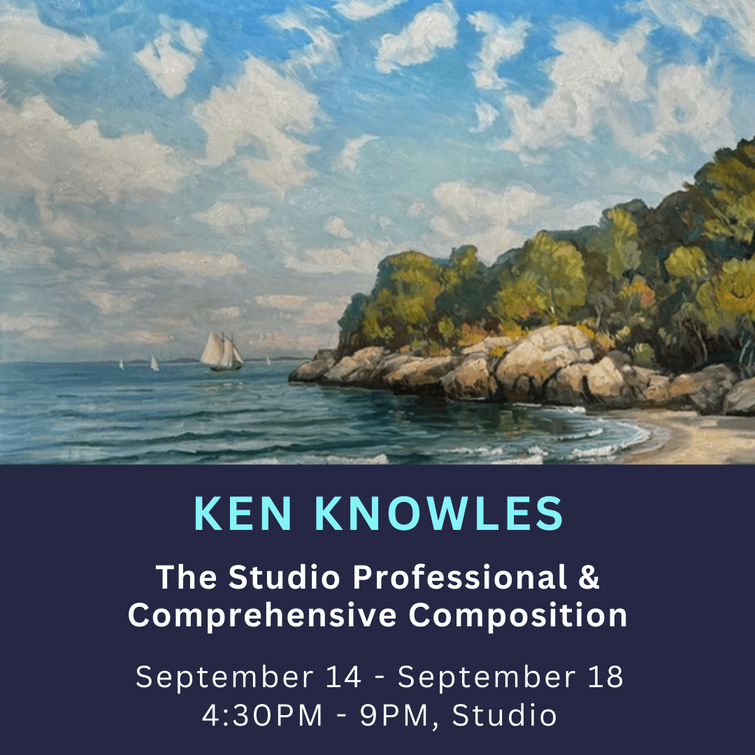 In addition to daily instruction, studio students will be invited to participate in an optional plein air field outing to sketch or try a color study. The outing offers a low-pressure way to experience plein air within the comfort of your chosen format.