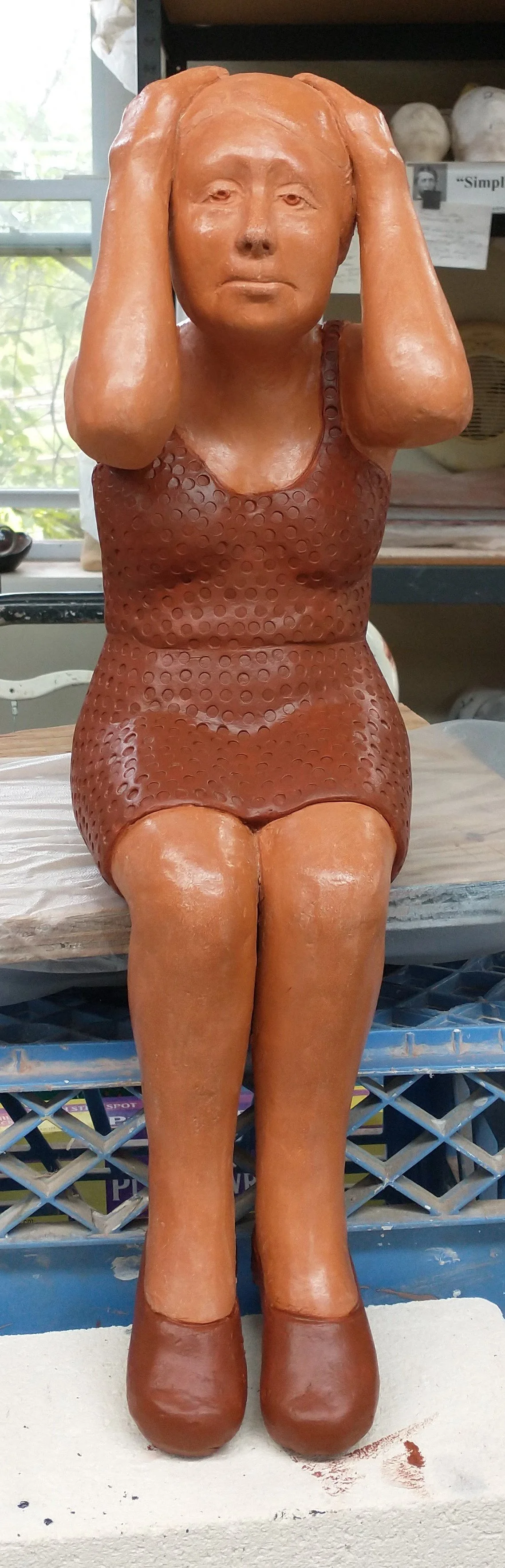 My subject matter is predominately (but not exclusively) figurative and female. It is about how individuals exist in time and space, both alone and with others, in the present moment and in the next present moment. I am interested in creating sculptures of people who are comfortable in their own skins, people who use this understanding of themselves and their place in the universe to evolve and develop their talents and creativity. I intend my work to be both contemplative and comforting. In the last several years, I have expanded my subject matter to include anthropomorphic animals, especially rabbits.
